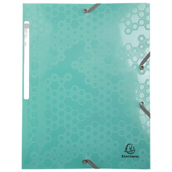 Specifikacija: format: DIN A4; reciklirani PP; 3 klape; 2 elastične gumice; kapacitet 250 listova (80gr); elegantan dizajn saća daje šik i rafinirani izgled; novi način pregleda vaše organizacije bez kompromisa po pitanju poštovanja prema okolišu; fleksibilna i izdržljiva mapa; s elastičnim gumicama od reciklirane plastike s velikim kapacitetom za arhiviranje; izvrsna zaštita dokumenata s unutarnjim preklopima; prikladno za nošenje i pohranu vaših dokumenata; etiketa za identifikaciju sadržaja; certifikat Plavi anđeo; boje: plava, magenta, narančasta i morsko zelena